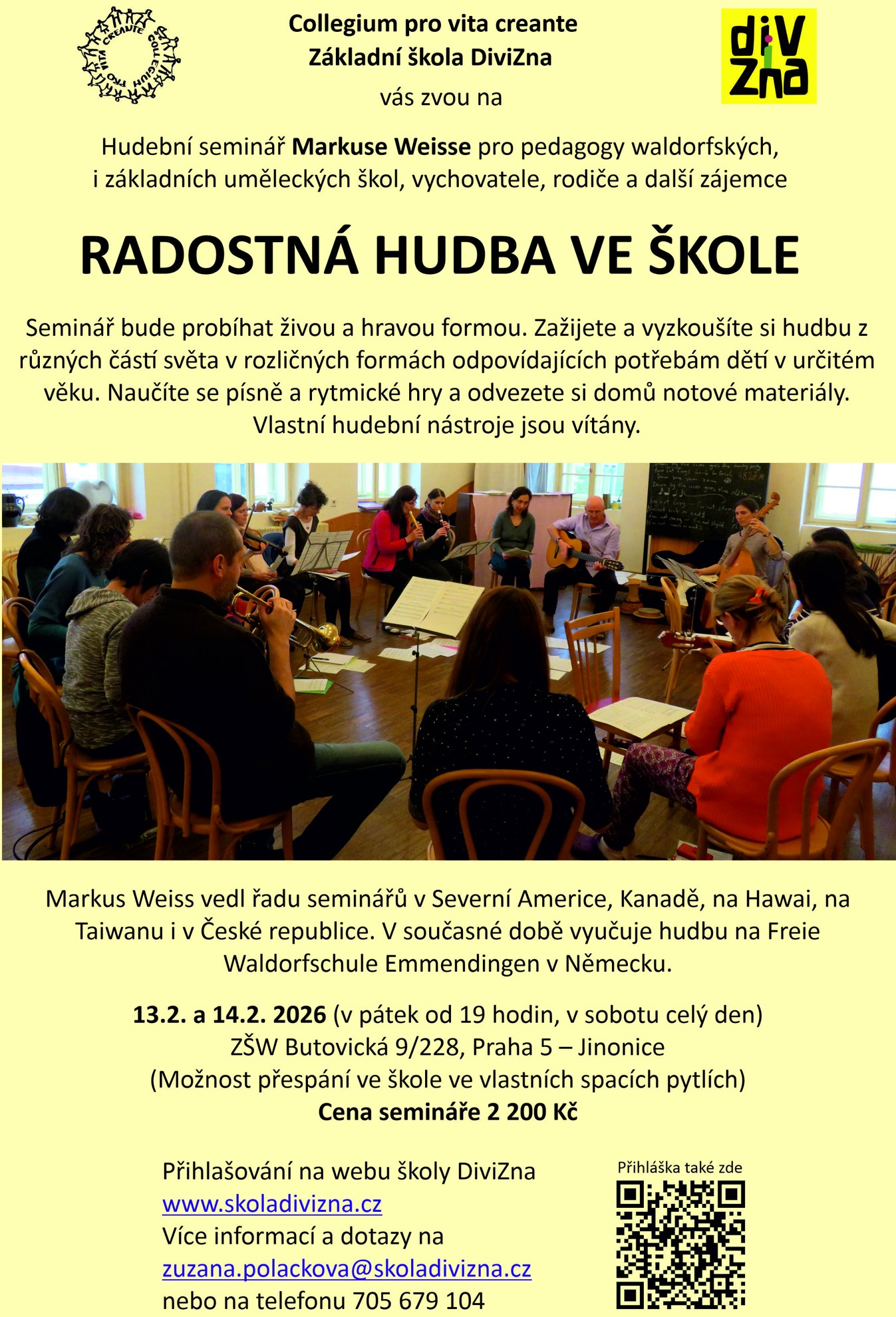 Hudební seminář pro pedagogy ve školách, učitele hudby, vychovatele, rodiče a další zájemce.