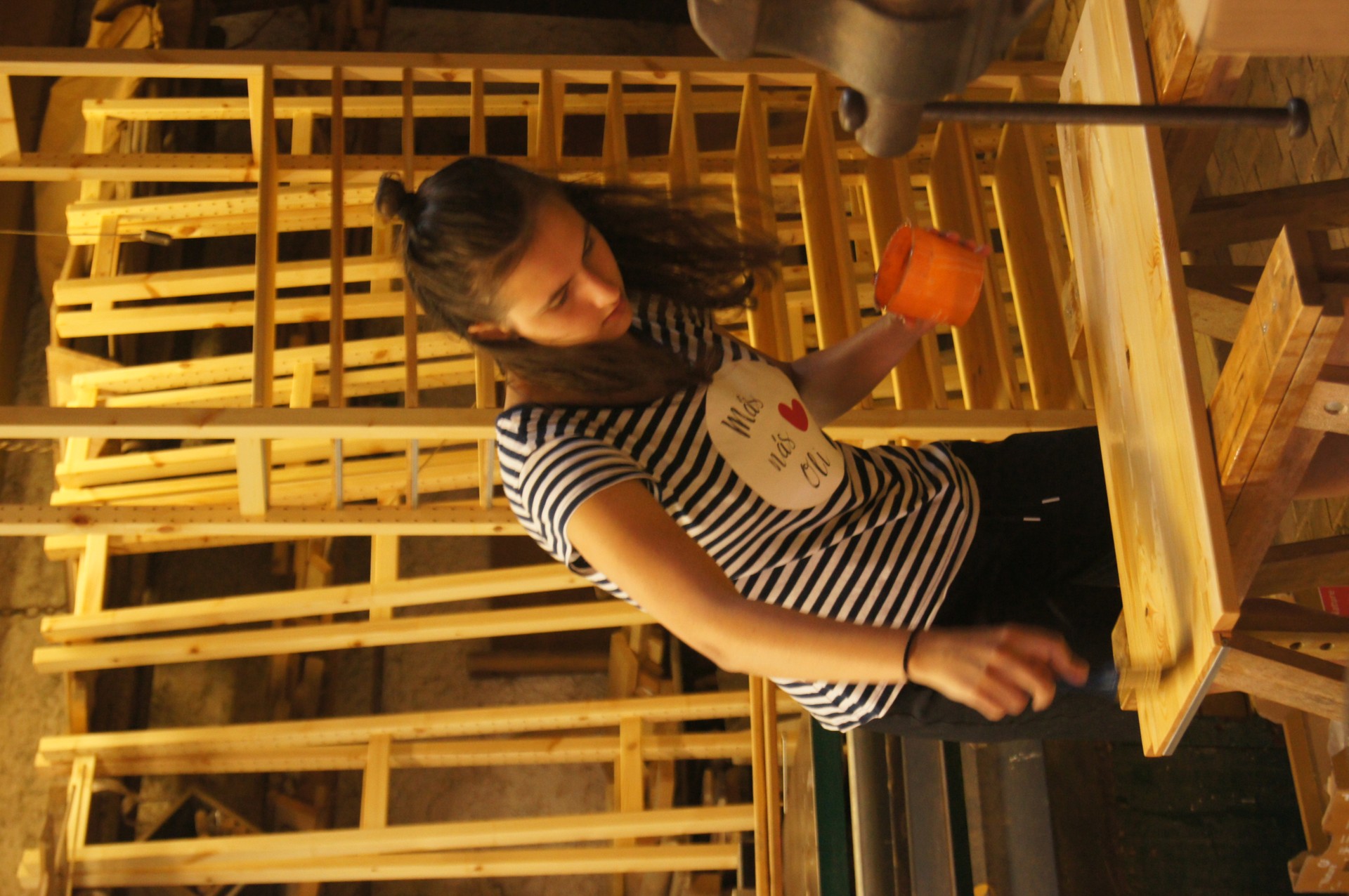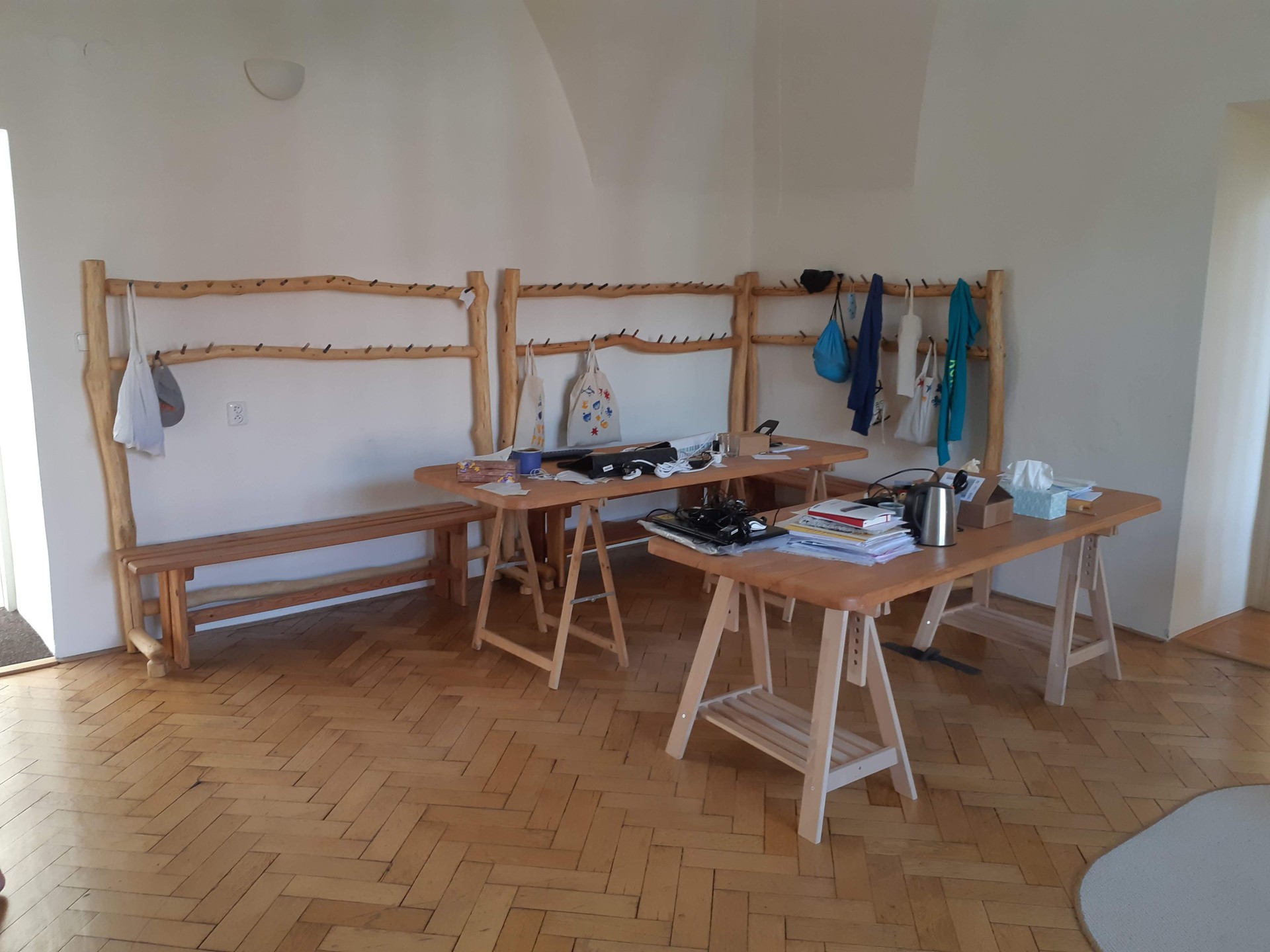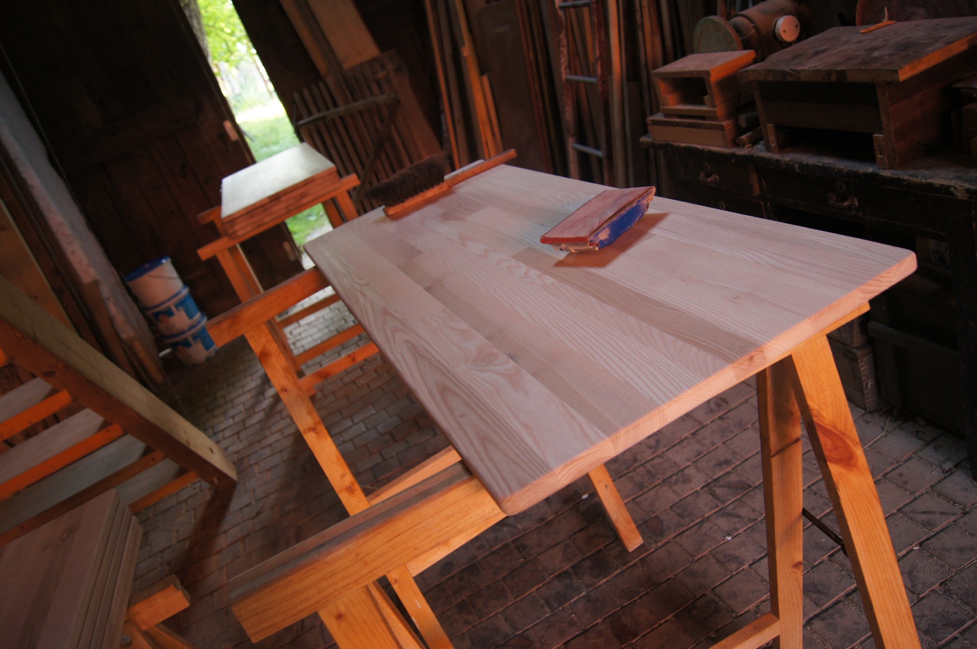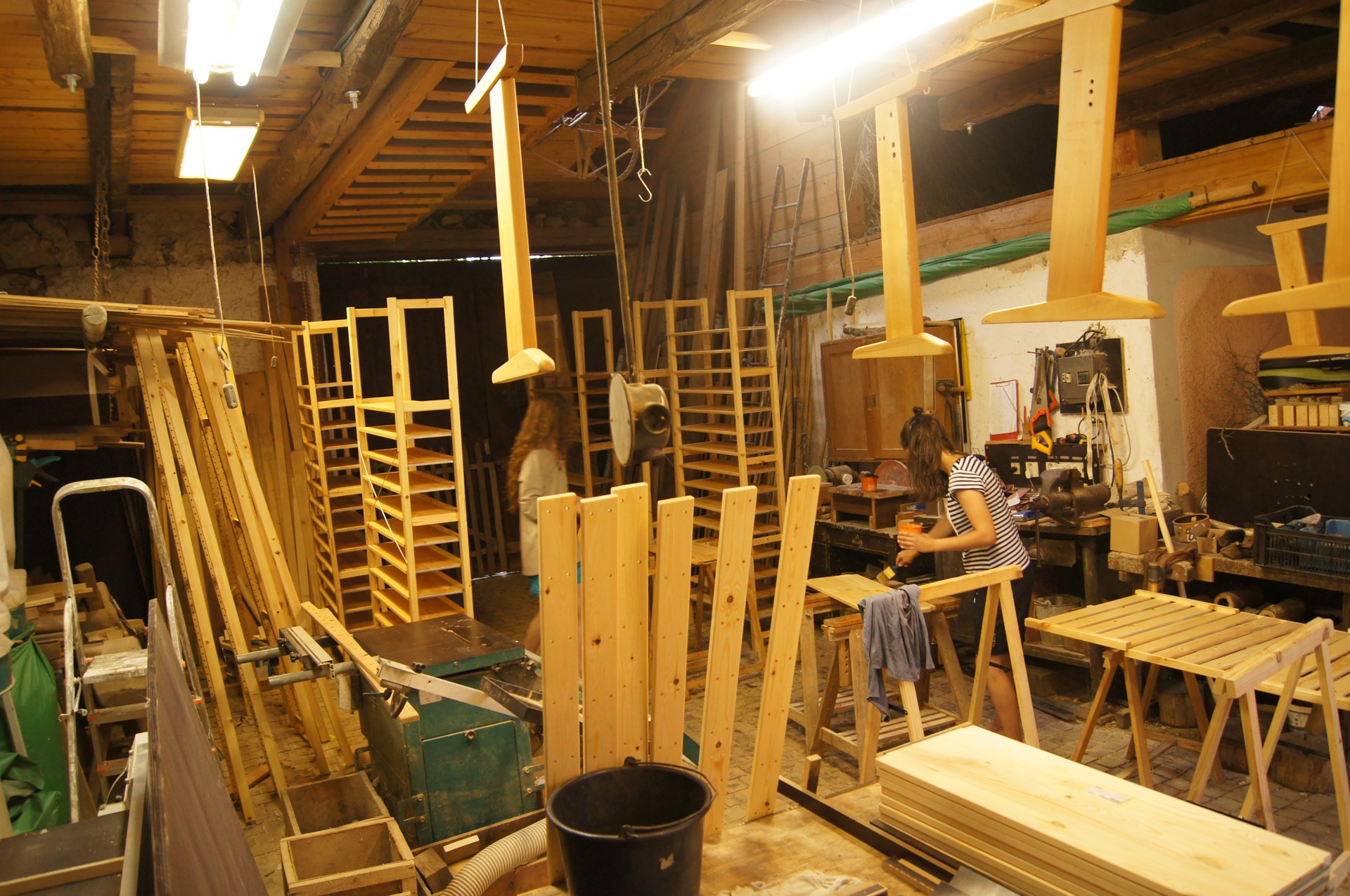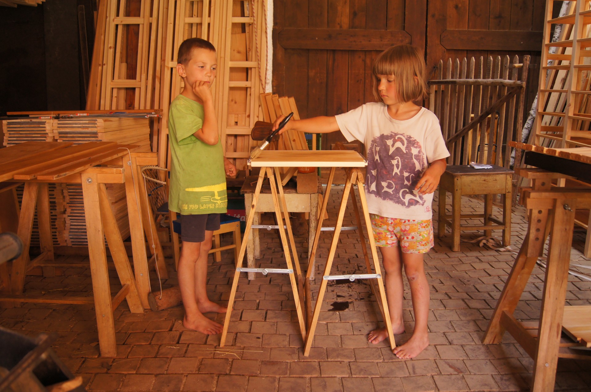 Pracuje se nejenom ve škole, ale i na holasickém Statku, který skýtá více prostoru na čerstvém vzduchu, který je zejména při povrchových úpravách dřeva více než vítán. Také zázemí stolařské dílny řadu prací usnadňuje. O možnosti ubytování, stravy i koupání v maršovském kaolinovém jezírku pro naše pomocníky nemluvě…