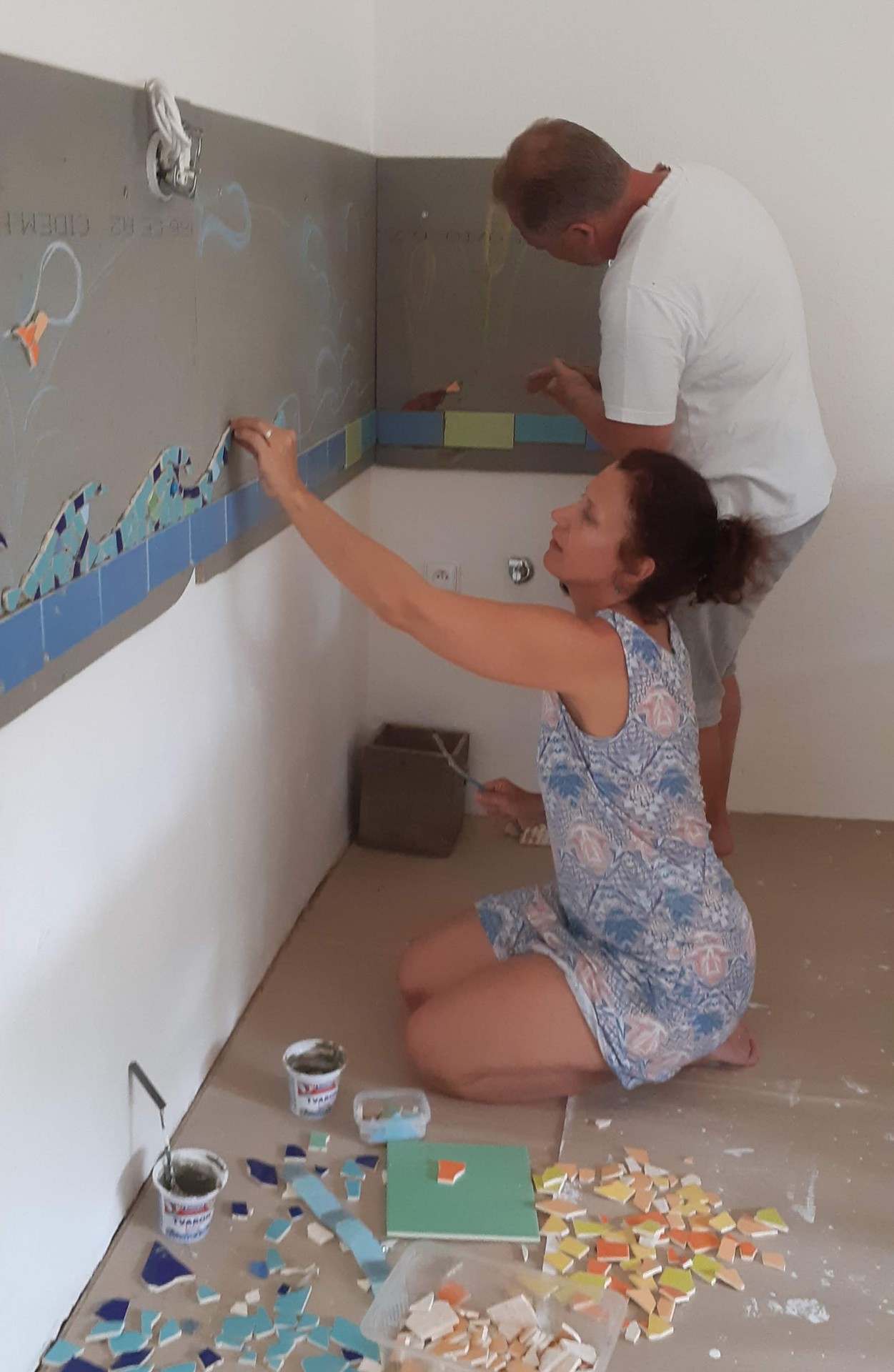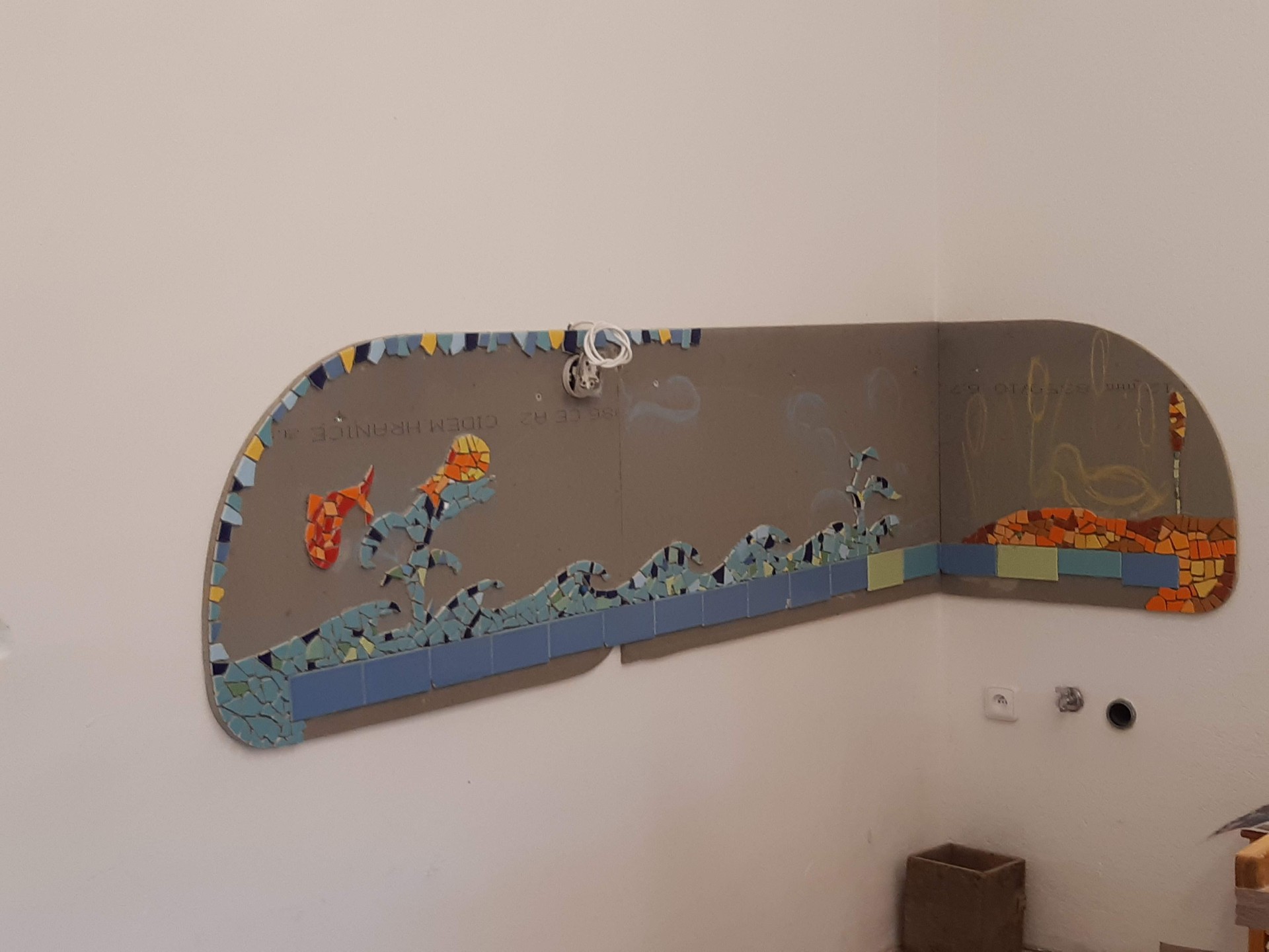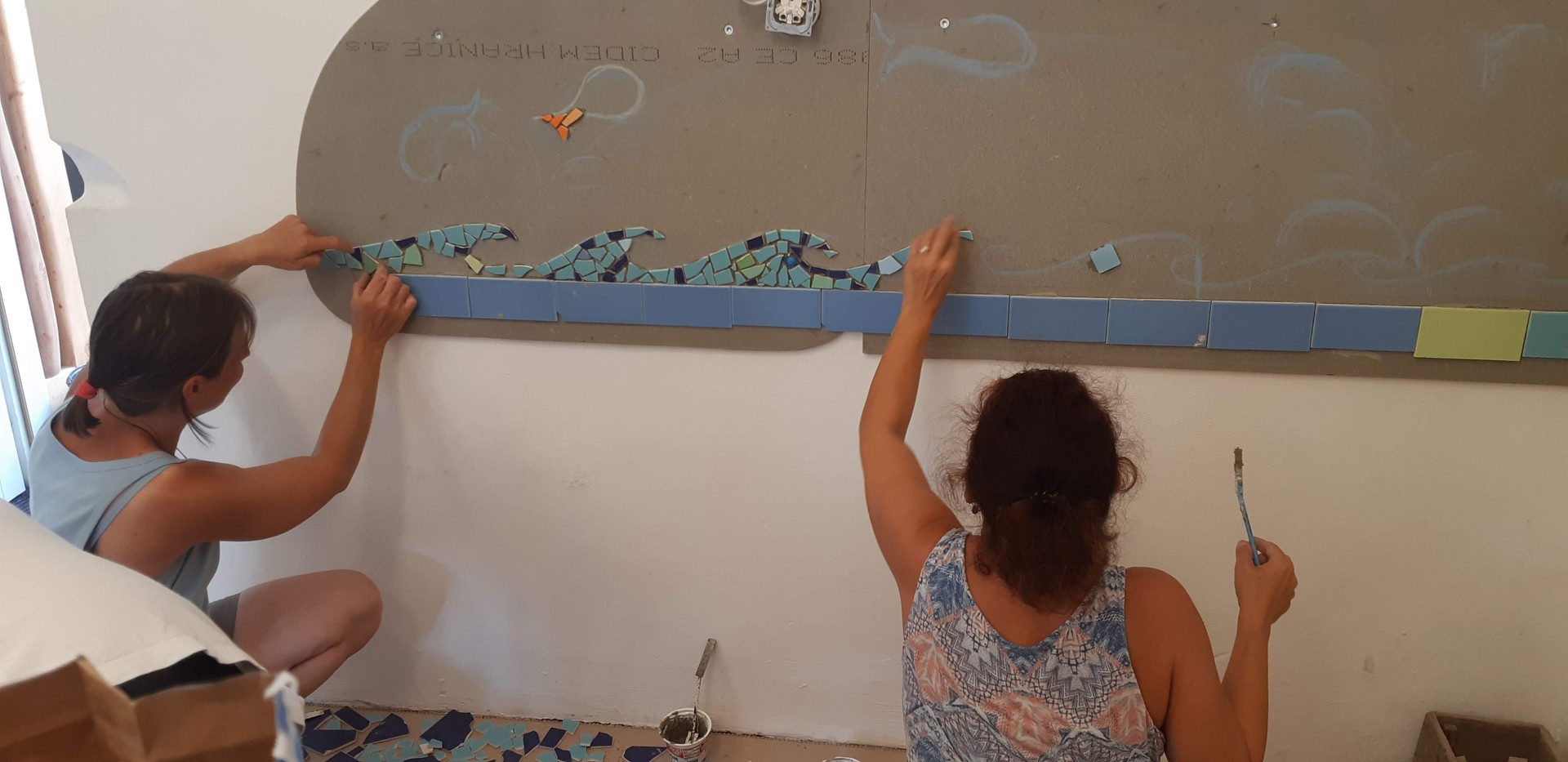V nové třídě pro naše prvňáčky také vzniká pod rukama rodičů mozaika, tak jak v minulých letech i v ostatních třídách.